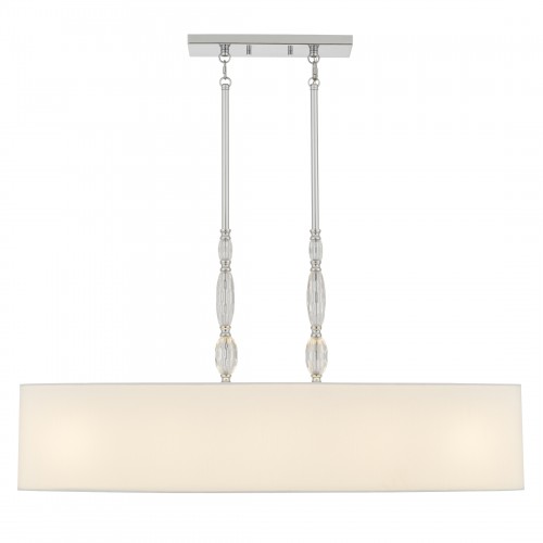 Graceful curves, gleaming polished chrome, and soft, glowing shades define the romantic charm of the Stone Collection. The classic chandelier and wall sconce feature opal etched glass, while the linear chandelier is dressed in white linen fabric for a touch of elegance. Chandeliers include a dual mounting system—choose a clean, rod-to-canopy look or opt for the chain-loop-chain for easier installation. Timeless, luminous, and versatile, Stone brings classic beauty to any space.