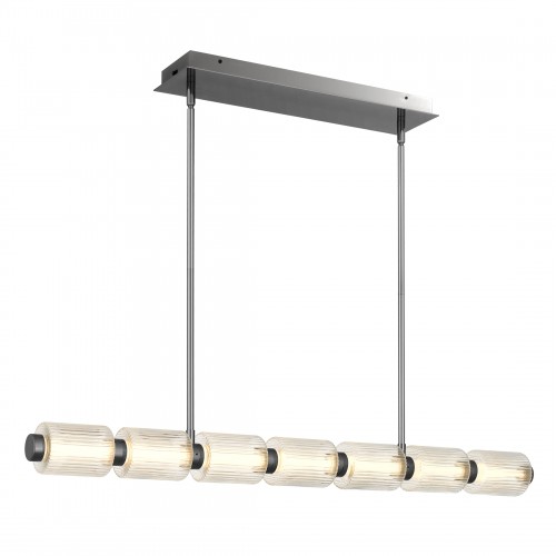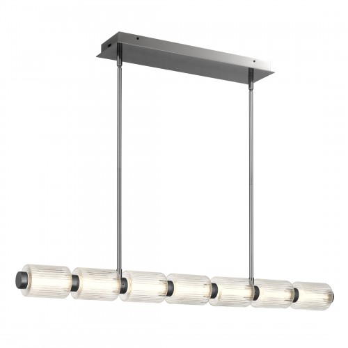 Infuse your space with a quiet elegance and radiant charm. With its striking black chrome finish and clear ribbed glass shades, Turner captures the essence of modern romance. Designed with modern convenience in mind, Turner features an integrated LED light source and an adjustable CCT switch, offering five selectable color temperatures from a cozy 2700K to a vibrant 5000K. This allows you to effortlessly set the mood, whether you're seeking the golden tones of candlelight or the crisp clarity of daylight. Available as a mini pendant or island light, Turner brings an artful balance of form, fun
