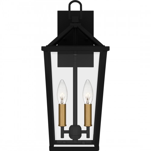 Hull is a traditional outdoor lantern collection designed for sleek exteriors. The tapered frame is finished in matte black and accented beautifully with gold candle sleeves for a hint of luster and industrial style. Clear beveled glass panels complete the look and showcase the natural beauty of the light. Hull is available as a complete collection - round out your home's exterior with a hanging lantern, wall lanterns, or a post lantern.