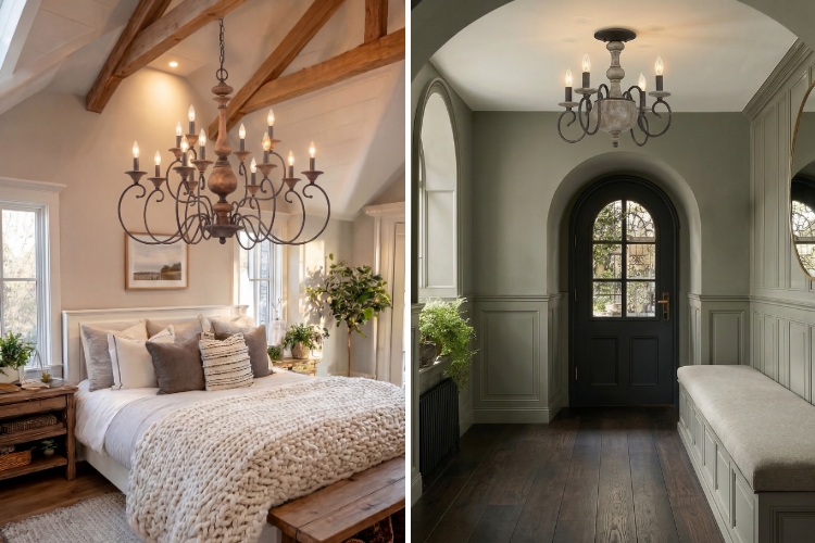 Wood tones and warm finishes help tie everything together. Even small wood accents in a fixture can tie in with the room’s flooring, furniture, or architectural details.