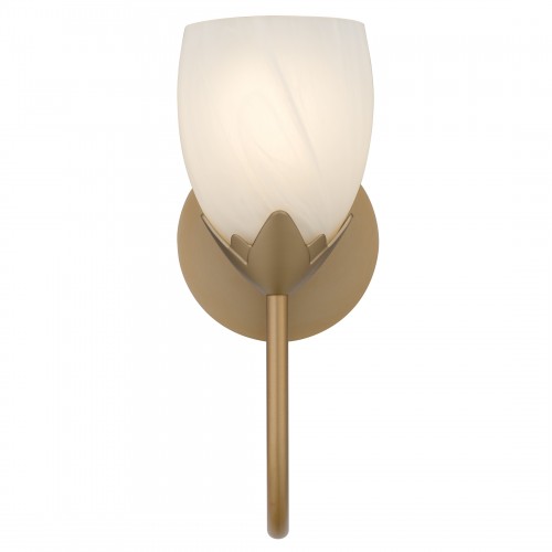 Elegant curves and soft, glowing beauty define the Jacobs Collection—a delicate balance of form and feeling. Finished in a warm bronze gold, its gracefully arched arms and petal-like cups cradle tulip-shaped etched alabaster glass shades, casting a light that feels tender and timeless. Available in multiple vanity sizes and as a single-light sconce, Jacobs is designed to bloom beautifully in any space—from cozy powder rooms to grand master baths. With every switch, it invites you into a moment of quiet luxury and refined romance.