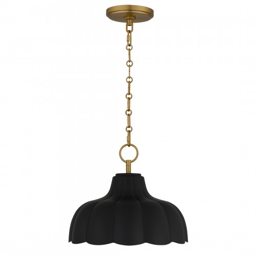 Bathe your space in the warm, golden glow of the Leanne Pendant Light—a timeless piece where classic form meets modern charm. With its gracefully contoured metal shade, the Leanne is finished in a rich matte black that exudes quiet sophistication. Inside, a surprise awaits: a brushed brass interior that captures and reflects light like the soft flicker of candlelight, casting a warm, romantic ambiance. Suspended from a delicate chain with golden links, the Leanne sways gently with the rhythm of the room—perfect for intimate dinners, cozy reading nooks, or serene bedrooms.