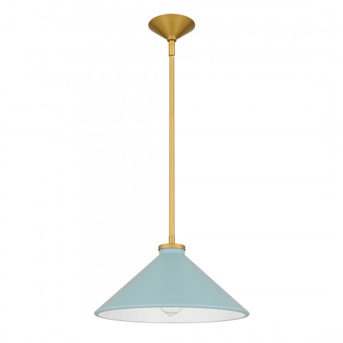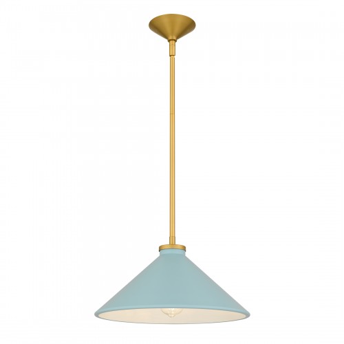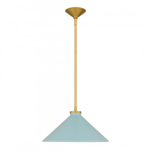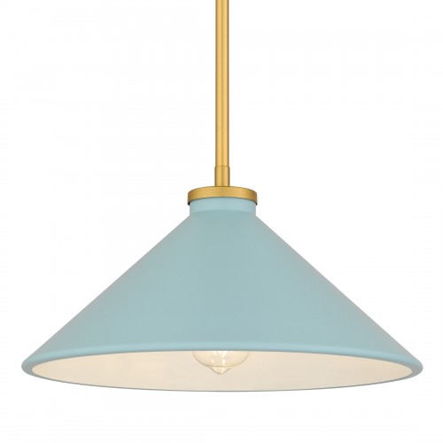 Bradbury 1-Light Brushed Gold Pendant Light with Light Blue Shade