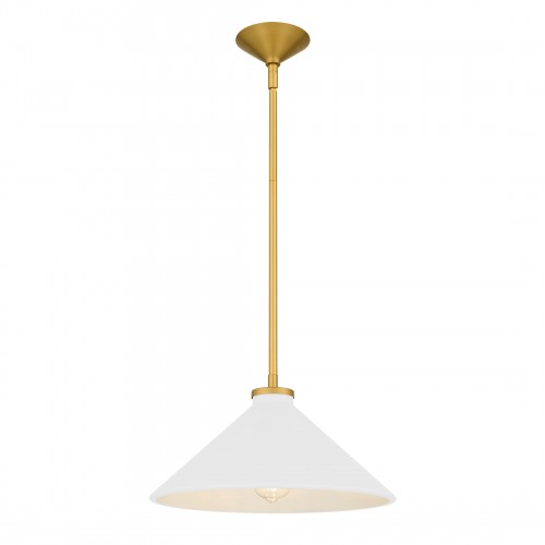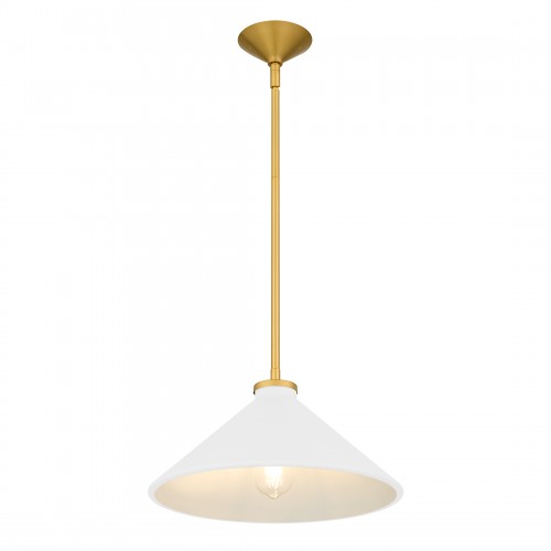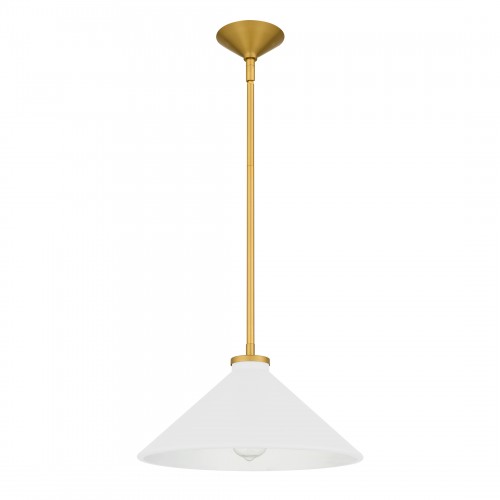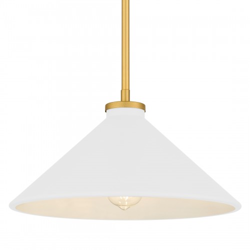 Bradbury 1-Light Brushed Gold Pendant Light with White Shade