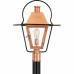 From the Charleston Copper & Brass Lantern Collection, the Rue De Royal offers the historic look of gas lighting without the hassle of a propane feed. It is all electric and features a hand-riveted solid copper or brass frame, combining the romantic charm of an antique lantern with the modern convenience of energy efficiency.Metal finishes will naturally mature and patina over time, changing in appearance and creating a living finish.