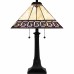 The Edith table lamp delivers on both style and function. The classic Arts and Crafts design features a matte black finish and multicolored glass shade. The handcrafted shade is made of hand assembled Tiffany glass in shades of cream and warm honey amber with a geometric border of rich, purple jewel tones. Illuminate your living room, add style to a home office, or cozy up in your bedroom for some reading.