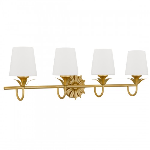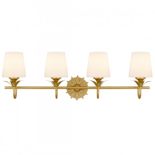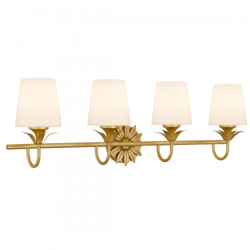 Elegant and enchanting, the Dorothea light is a radiant ode to classic beauty. Whether styled as a wall sconce or a vanity light, its design captivates with a graceful gold leaf finish and soft, sculptural detailing reminiscent of blooming petals. The opal etched glass shades diffuse light with a gentle glow—like morning sunlight filtering through fine linen. Available in multiple sizes, Dorothea brings a romantic warmth and timeless sophistication to any space, illuminating your home with poise and charm.
