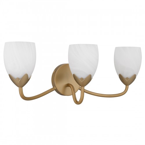 Elegant curves and soft, glowing beauty define the Jacobs Collection—a delicate balance of form and feeling. Finished in a warm bronze gold, its gracefully arched arms and petal-like cups cradle tulip-shaped etched alabaster glass shades, casting a light that feels tender and timeless. Available in multiple vanity sizes and as a single-light sconce, Jacobs is designed to bloom beautifully in any space—from cozy powder rooms to grand master baths. With every switch, it invites you into a moment of quiet luxury and refined romance.