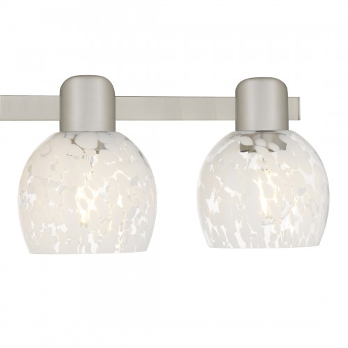 Softly luminous and artfully designed, the Layton vanity light brings a gentle elegance to your daily rituals. Its brushed nickel finish lends a sleek, modern touch, while the white dot glass shades glow like frosted petals kissed by morning light. Each shade is delicately speckled, creating a dappled effect that feels dreamy and handcrafted. Whether mounted above a mirror or lighting a serene space, Layton casts a warm, flattering glow—perfect for slow mornings, quiet evenings, and everything in between. It’s more than just lighting; it’s a moment of calm, captured in glass and metal.